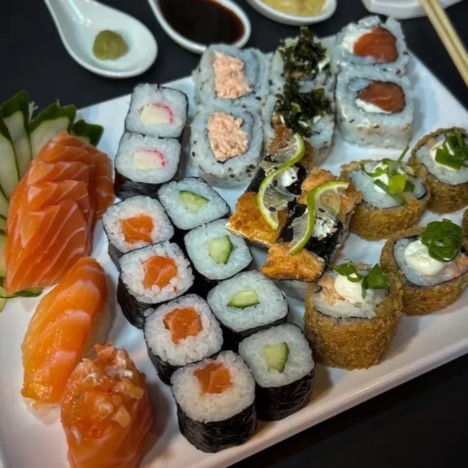 5 Sashimi 1 Niguiri 1 Jhou 2 Uramaki 4 Kapamaki 4 Salmomaki 2 Kanimaki 2 Uramaki Skin 2 Uramaki Filadelfia 5 Hot-Roll