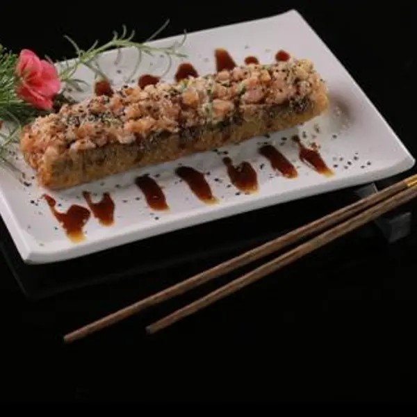 Temaki de salmão grelhado com cream-cheese e cebolinha empanado e frito