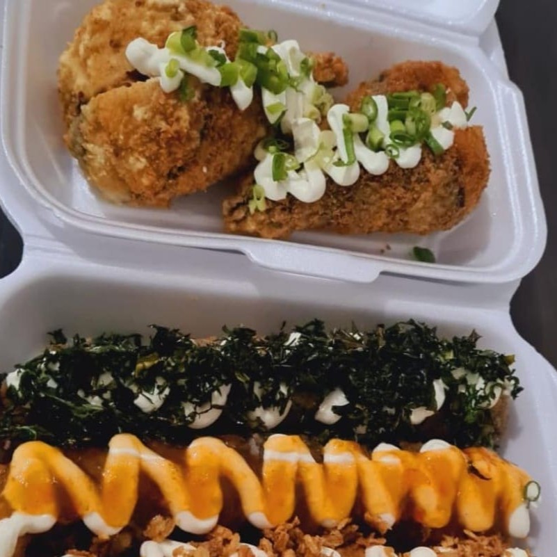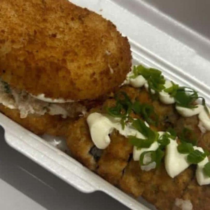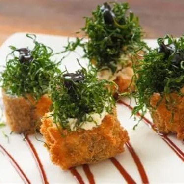 Combo Ikai com 1 Temaki Empanado de salmão com Doritos e 10 hot Holl cebola crisp e 10 com couve