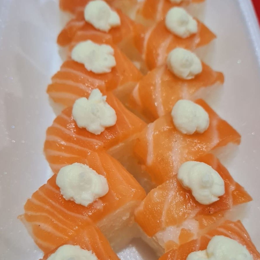 Combo com 10 uramaki skin 05 batera de salmão 10 hot roll de salmão 6 hossomaki variados
