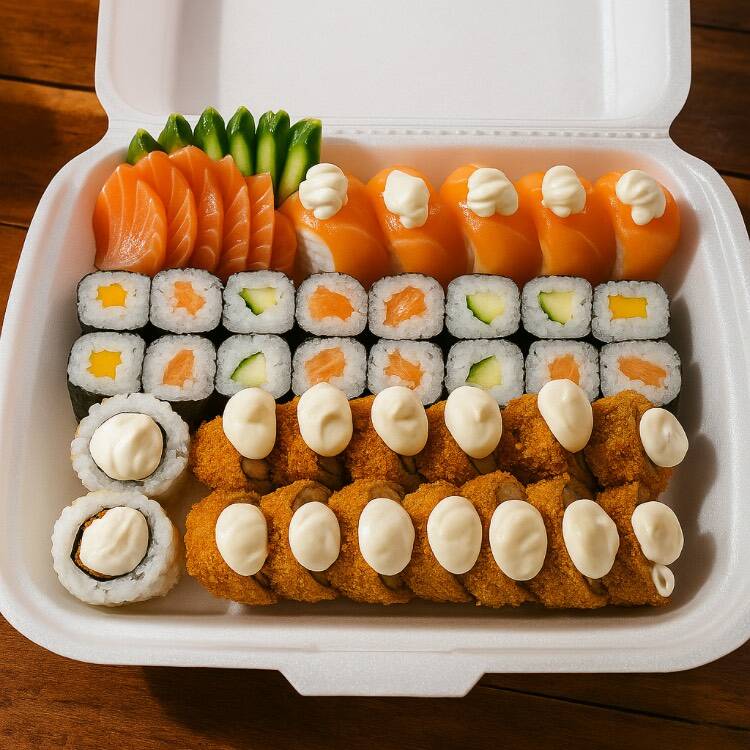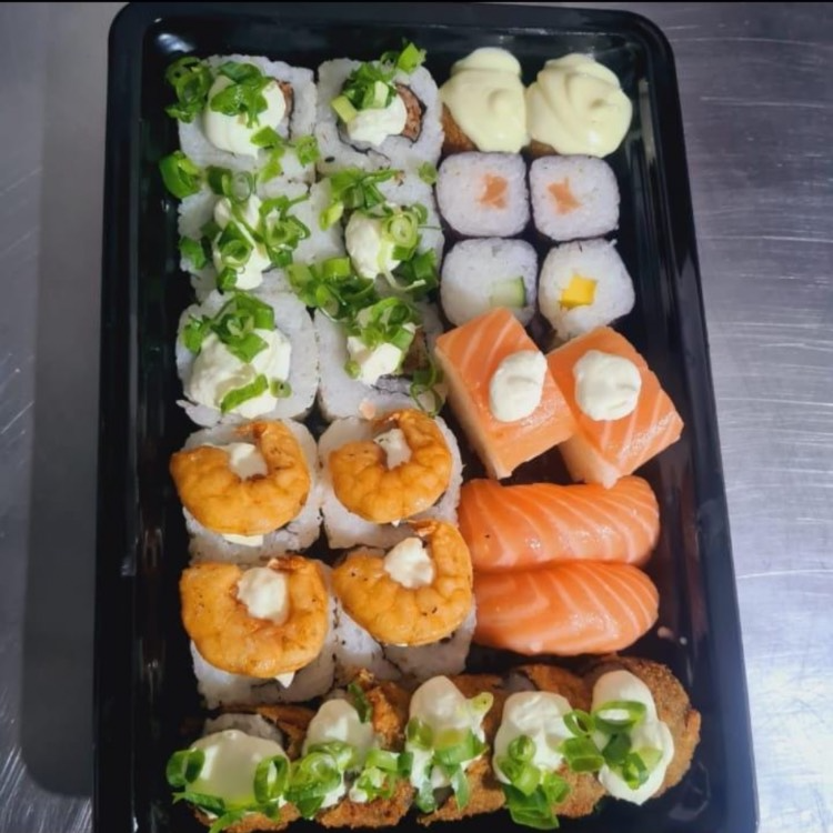 40 hot tradicional, 40 hot colorido, 20 uramaki grelhado, 10 batera, 30 hossomaki