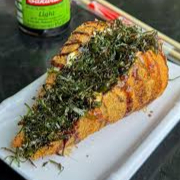 Burguer grelhado com creem cheeese e salmão grelhado