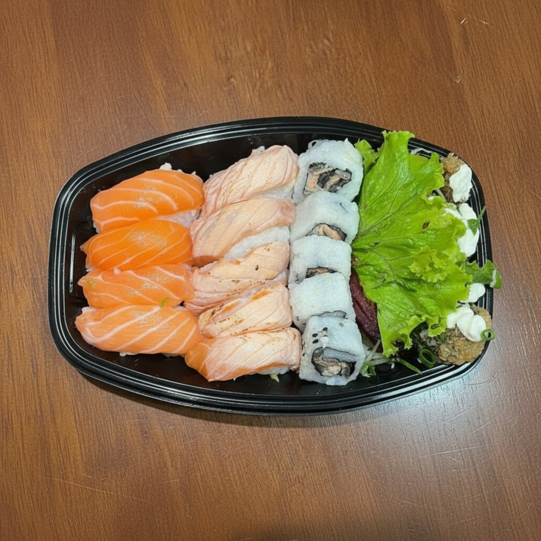 10 sashimis 12 niguiri 04 uramaki 02 sushi jhow 04 hossomaki 05 hot roll