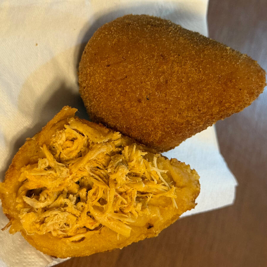 Coxinha recheada com frango desfiado e temperos especiais caseiro, envolta em uma massa crocante.