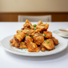 Crocante por fora e suculento por dentro. Uma deliciosa porção.
