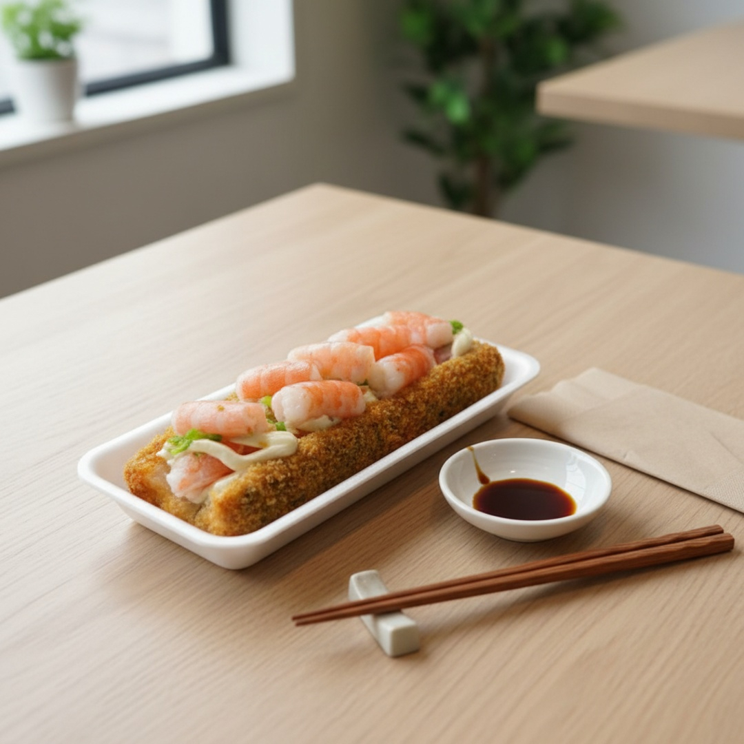 Pão de arroz empanado, crocante por fora e recheado com muito salmão, cream cheese e cebolinha fresca. Uma explosão de sabor e textura em cada mordida. Bem servido, crocante e irresistível!