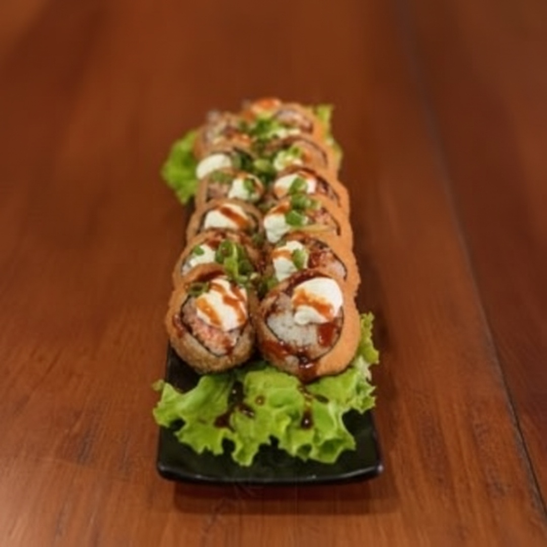 Enrolado crocante, recheado com camarão, cream cheese e arroz temperado, finalizado com molho tarê. Peças grandes, bem recheadas e servidas quentinhas, do jeitinho que quem ama hot roll gosta. Sabor marcante e textura que faz toda a diferença!