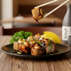 Fatias finas de salmão fresco, servidas com um delicioso molho de limão cítrico e leve, que realça o sabor e o frescor do peixe. Uma entrada equilibrada, refrescante e cheia de personalidade — ideal para quem aprecia o melhor da culinária japonesa.