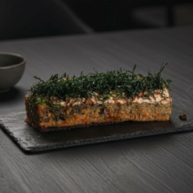 8 jyo de salmao com azeite trufado, raspa de limao ciciliano e flor de sal