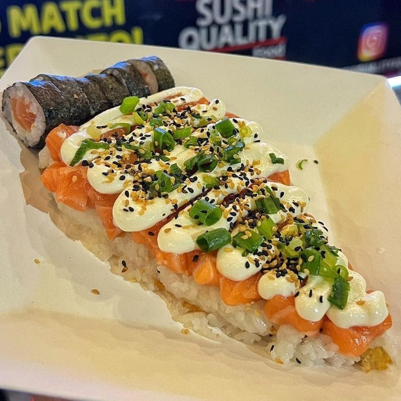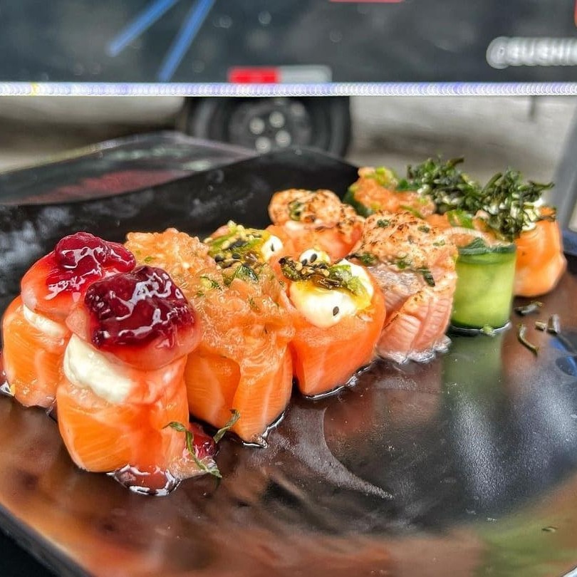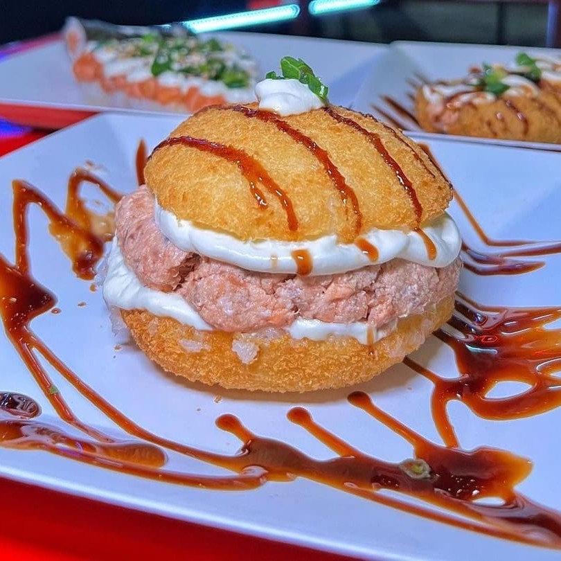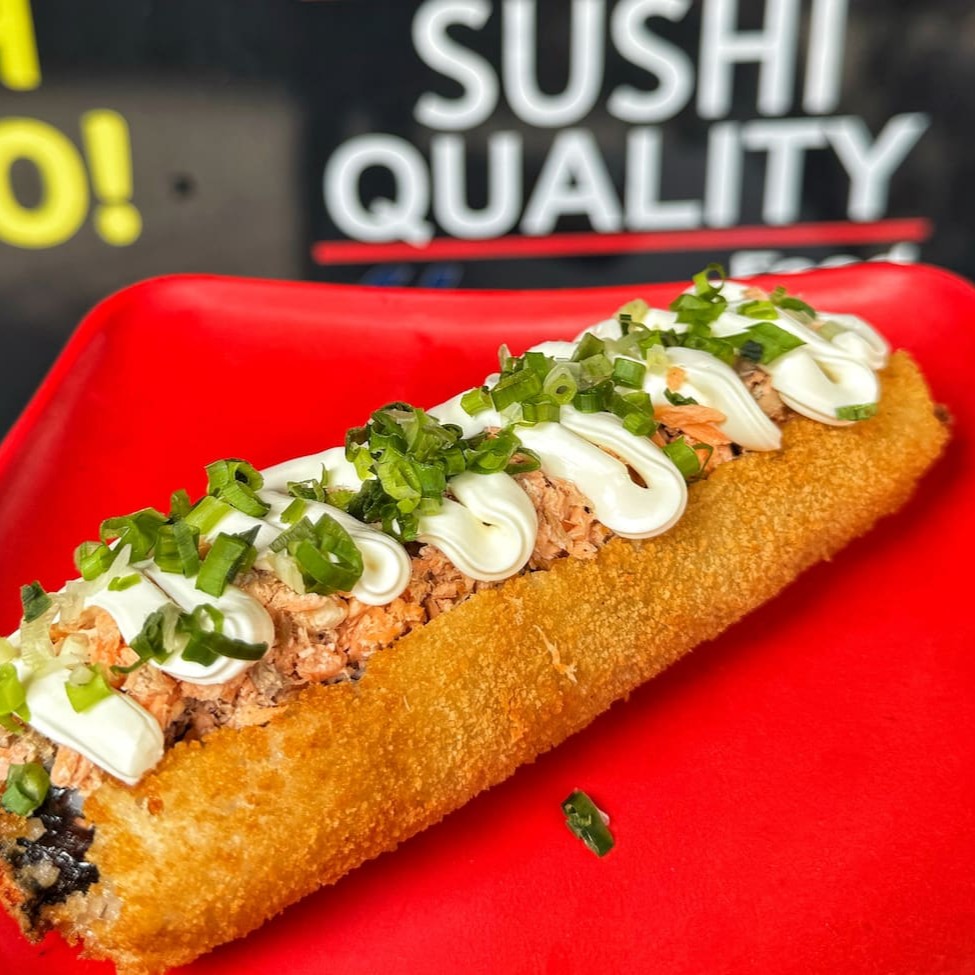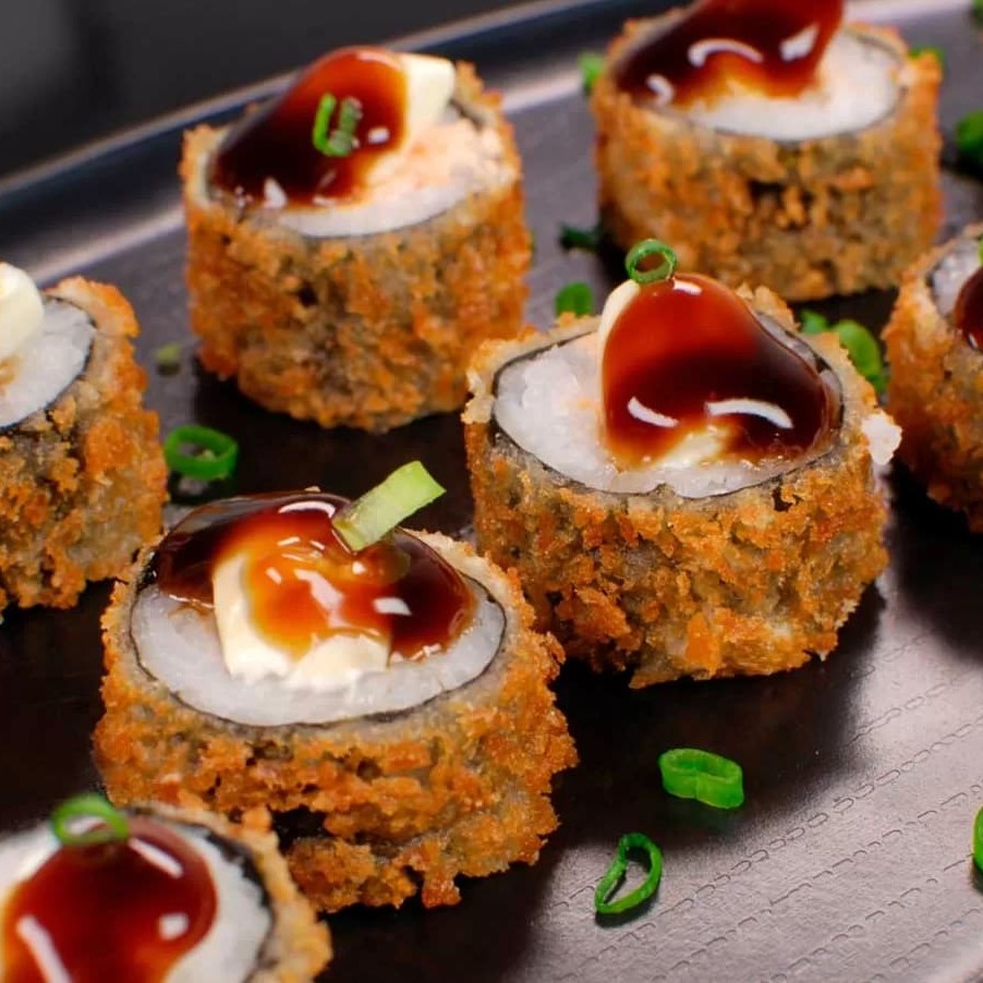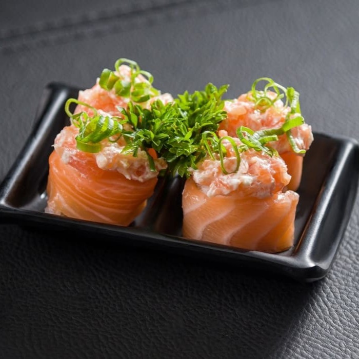 É composta por uma base crocante de Nori empanado, coberta por uma camada generosa de Shari, nosso arroz de sushi perfeitamente temperado. Suculento salmão grelhado, que adiciona uma camada extra de sabor e textura.