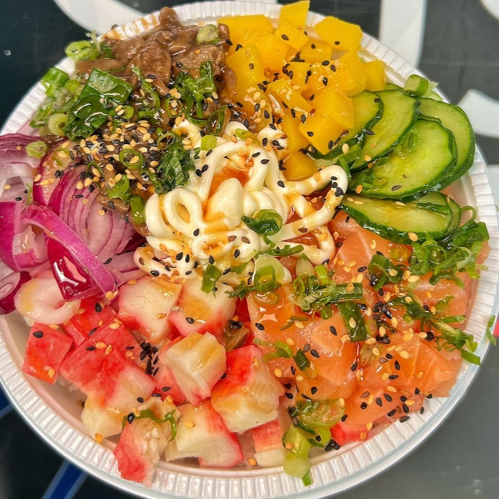 Acompanhado de arroz fresco, pepino crocante, manga, kani, cebola roxa que proporciona um leve toque picante e o suave cream cheese que equilibra todos os sabores. A finalização fica por conta do nosso molho especial à base de laranja.