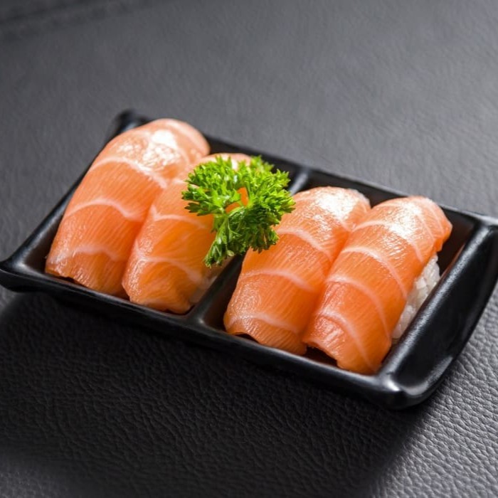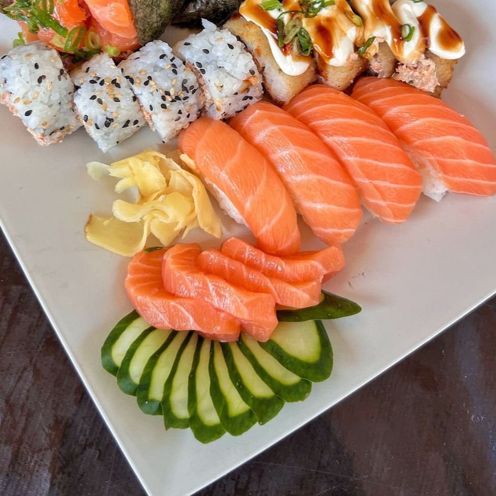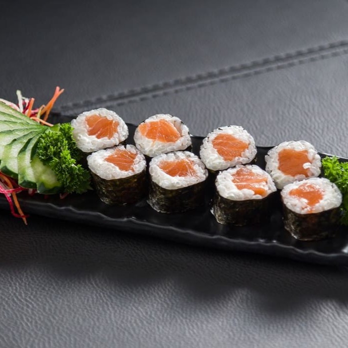 10 generosas fatias de salmão fresco, meticulosamente cortadas à mão. Cada pedaço é uma explosão de sabor, com a textura delicada e macia que só o salmão mais fresco pode proporcionar.