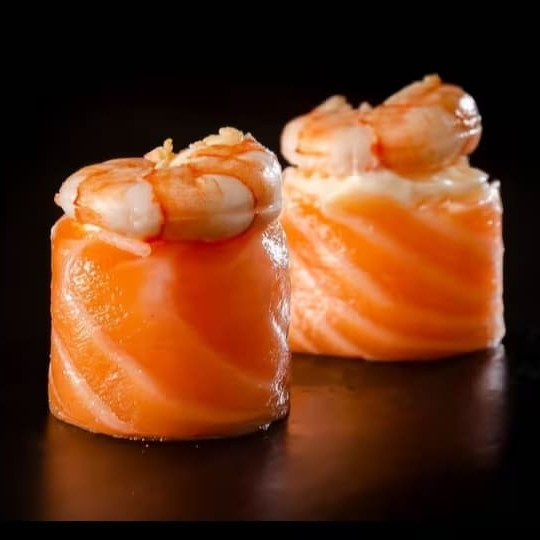 Combinação perfeitamente equilibrada de salmão fresco e camarão suculento.