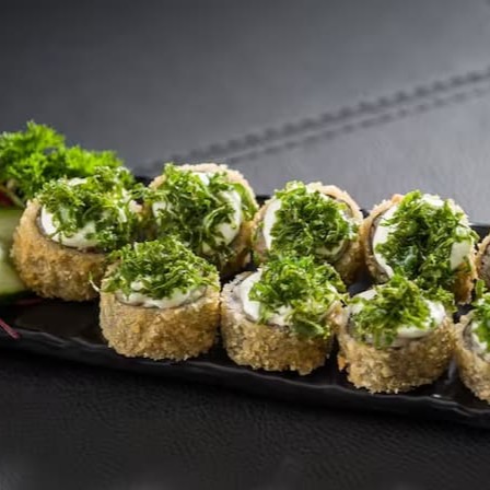 Este prato possui camarões suculentos, harmonizados perfeitamente com o sabor exótico do shimeji. Uma pitada de douritos adiciona uma crocância irresistível, enquanto o cream cheese de textura sedosa equilibra os sabores. A cenoura e o pepino adicionam um frescor único, e, para finalizar, nosso molho especial de laranja dá um toque cítrico surpreendente.