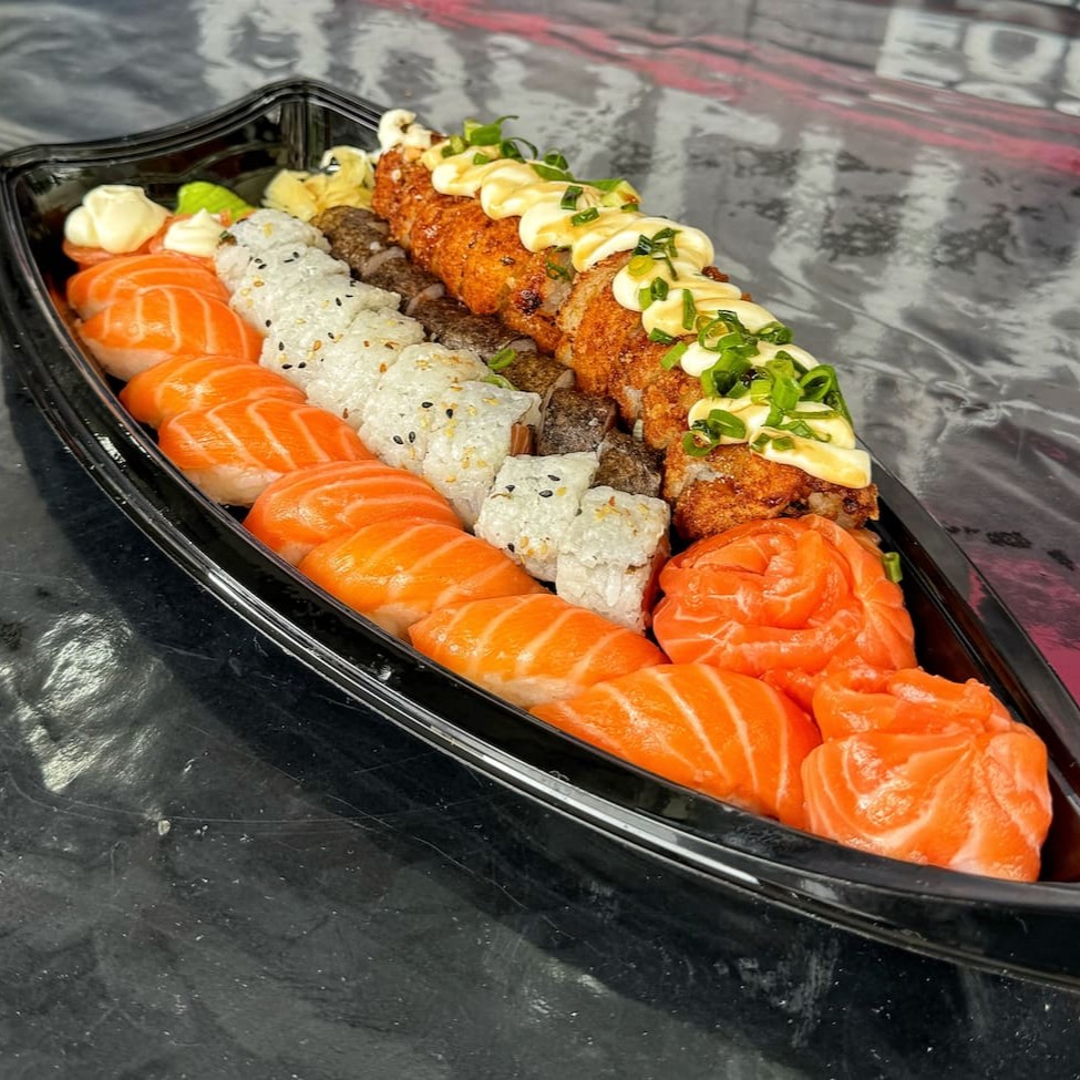Ideal para safisfazer os desejos de um amante de sushi. 4 sashimis frescos e saborosos, 4 jow enrolados, 4 uramakis cheios de sabor, 4 hossomakis tradicionais, e 4 niguiris delicados e suculentos.