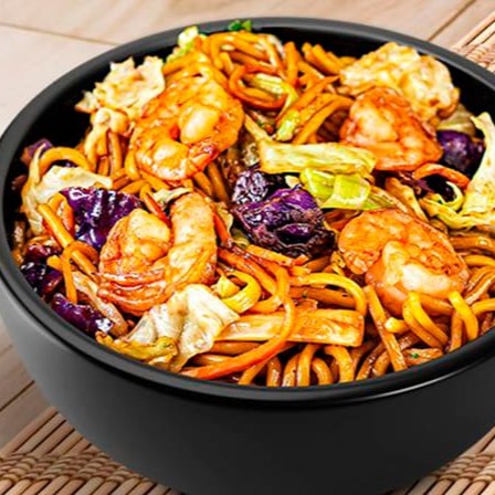 Macarrão fresco misturado a suculentas carnes de frango e temperos especiais, acompanhado por acelga crocante, repolho, cenoura e brócolis. Tudo envolto em um delicioso molho shoyu.