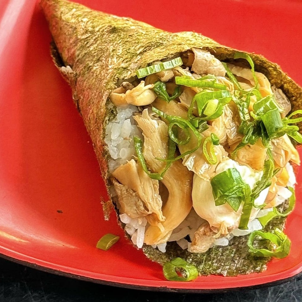 Recheado com muito shimeji com cream cheese, molho tarê e um toque final de cebolinha.
