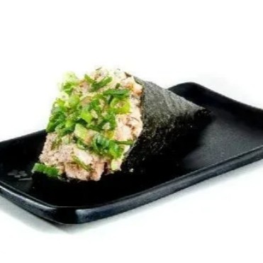 O temaki é empanado e frito até atingir uma crocância irresistível. Ele é realçado por um cream cheese e toque de molho tare, que adiciona uma nota picante e doce, e finalizado com a frescura da cebolinha.