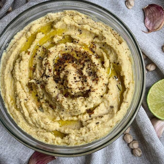 Homus da casa, feito a base de Grão de Bico, tahine, limão e especiarias! Uma delícia!! S2s2 - 180g.