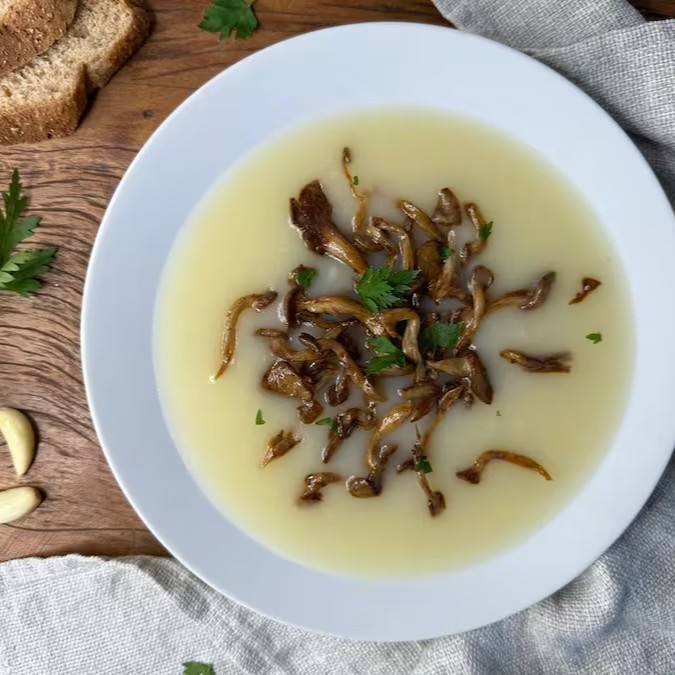 Creme de Batata com Shimeji, feito com batata inglesa, shimeji salteado, uma delícia s2s2