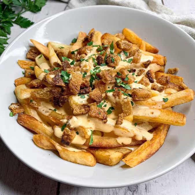 Super Batata Frita Com Cheddar E Bacon Vegana