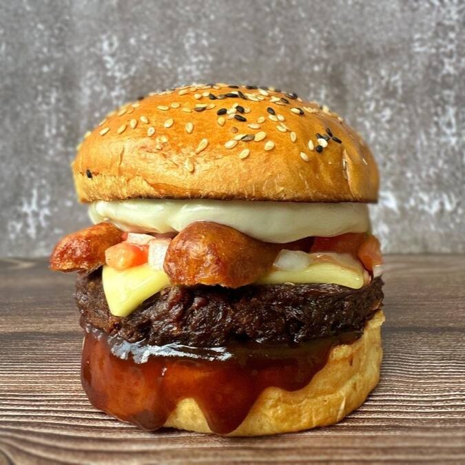 Nosso Super Burger de linguiça do Futuro, é feito com delicioso Burger a base de plantas, linguiça do Futuro, pão Brioche, maionese da casa, Molho Barbecue, vinagrete e mussarela plant-based! Meu deus uma Delicia! =) s2