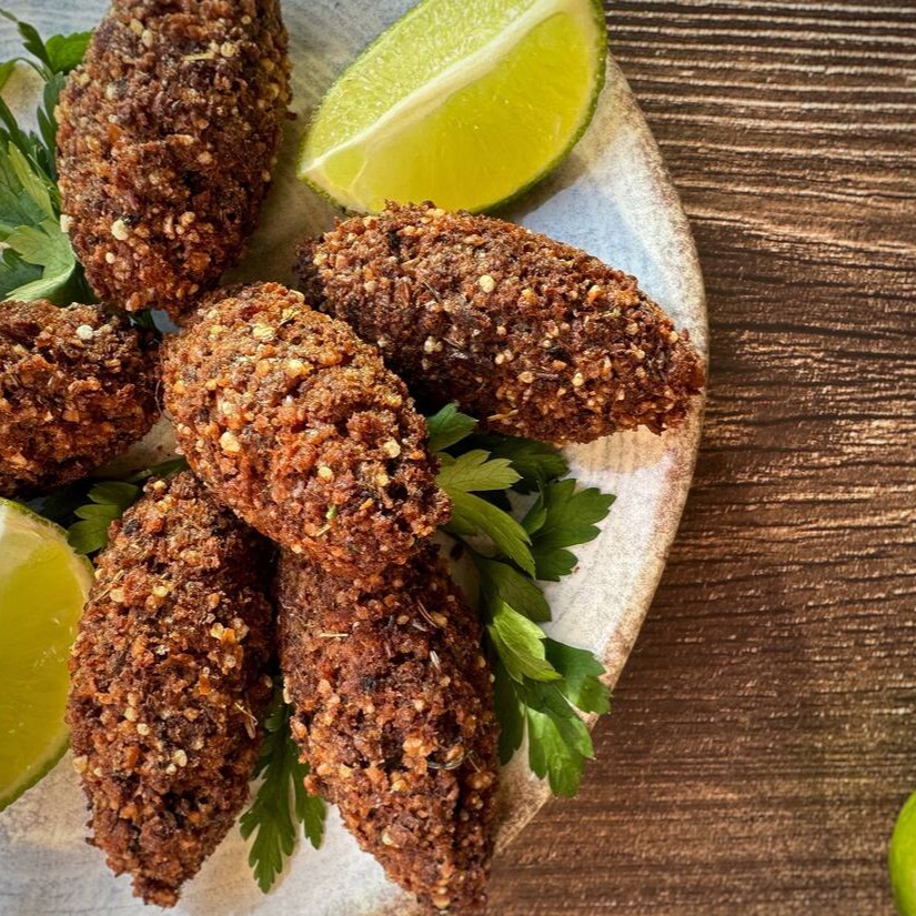 Feito com proteína de soja temperada, trigo para kibe e hortelã. Crocante por fora, macio por dentro e 100% vegetal! Porção com 6 unidades.