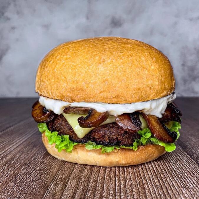 Nosso Mushroom Mayo Burger possui Pão Brioche Vegano*, Alface, Maionese Caseira Vegana, Cogumelos Paris em conserva refogados, Queijo Mussarela Plant Based e Super Hambúrguer Vegetal.