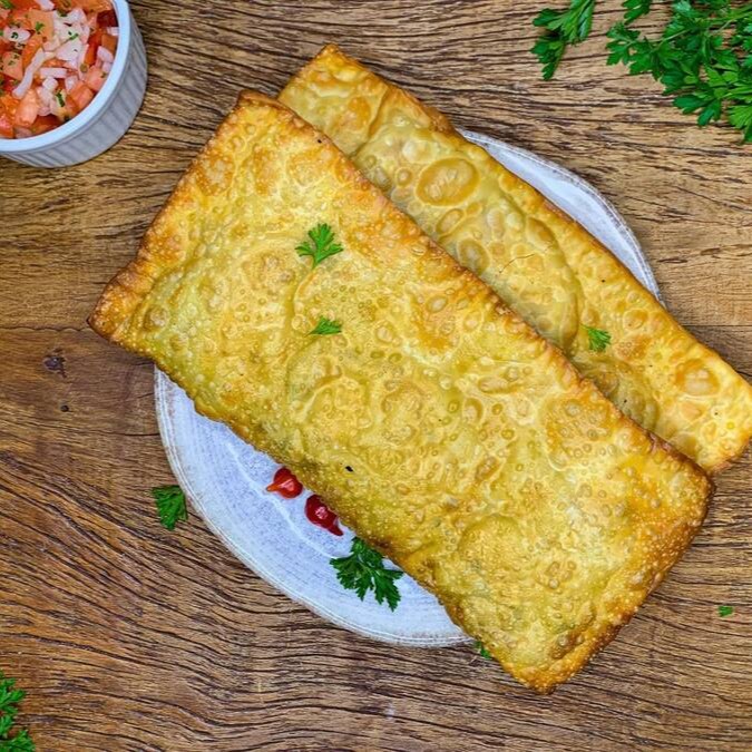 Feito com massa de pastel tradicional, carne vegano e mussarela plant-based. Crocante e muito gostoso!