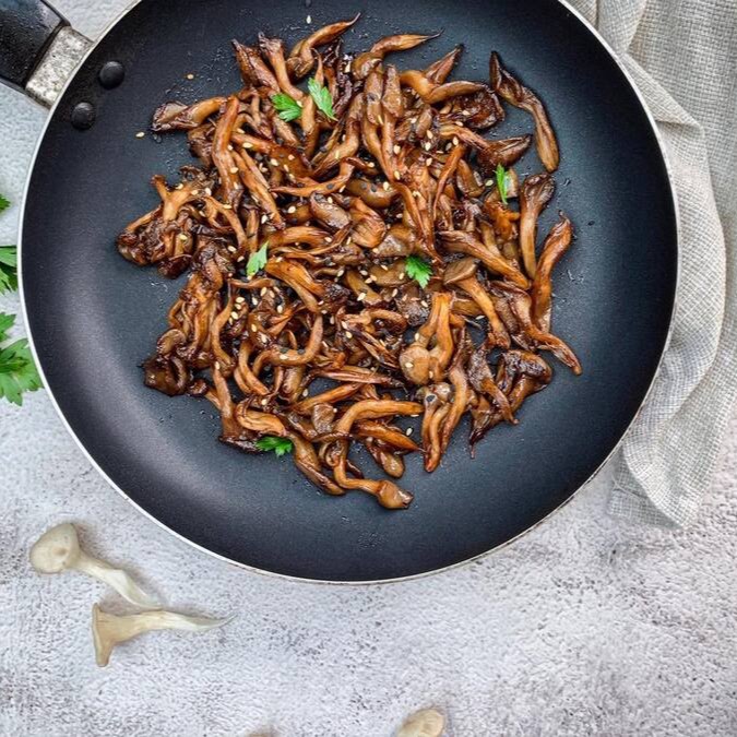 Nosso Cogumelo Shimeji puxado e caramelizado, e um leve toque de Mix de Gergelim... Hmmm , que delicia!