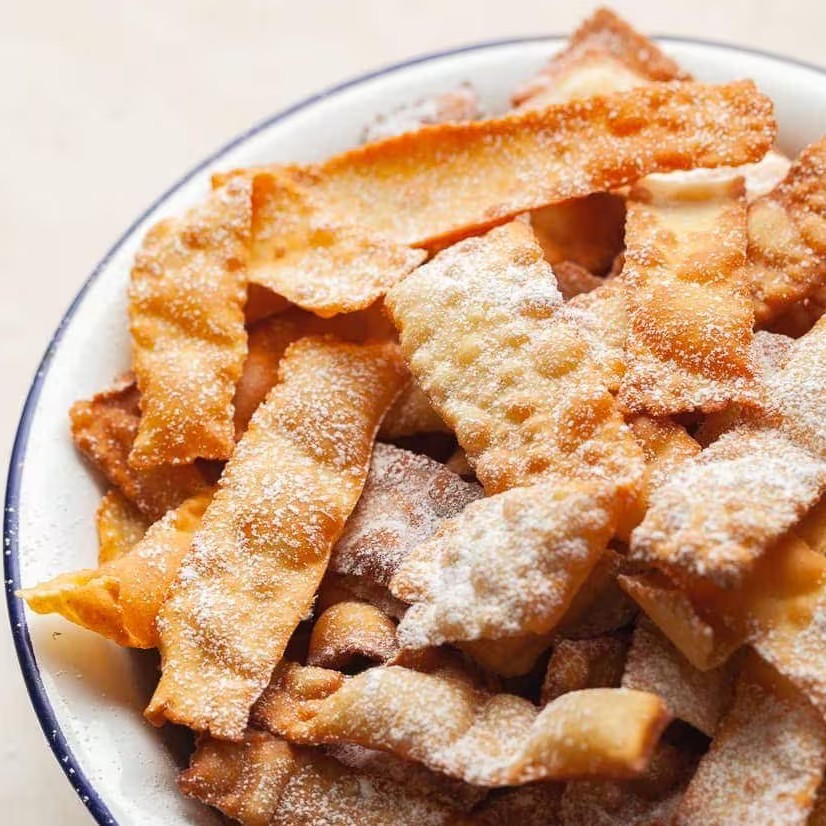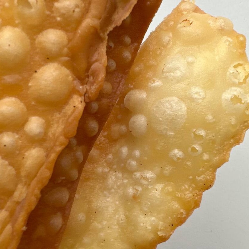 Massa fina e levemente crocante, frita até dourar e polvilhada com açúcar e canela.