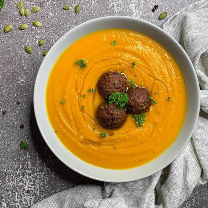 Caldo Verde Vegano Especial, um caldo delicioso, a base de Batatas Inglesas, Couve, e a super deliciosa Linguiça do futuro! Muito Sabor! Não esqueça de escolher seus complementos a baixo!