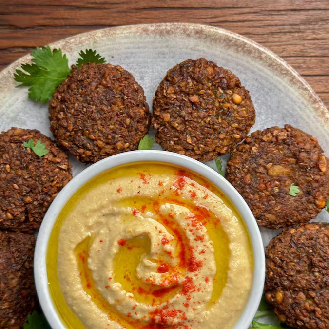 Deliciosas Bolinhas de Falafel feitas com Receita Tradicional Árabe, Grãos de Bico, Gergelim, Condimentos e Coentro. Muito Crocante!