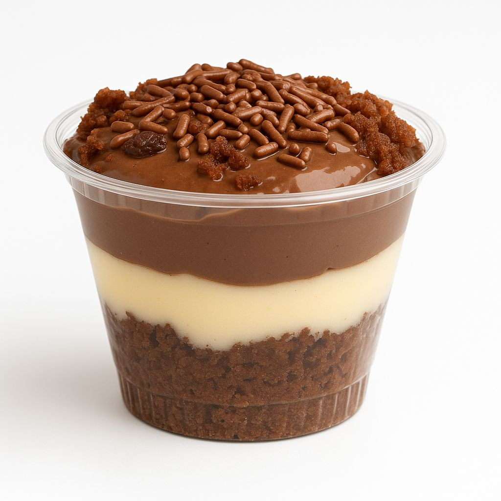 Uma combinação envolvente de bolo de canela com café, camadas de brigadeiro de cappuccino, brigadeiro de Ninho e um toque especial de doce de leite. Um sabor acolhedor e sofisticado para os amantes de café!