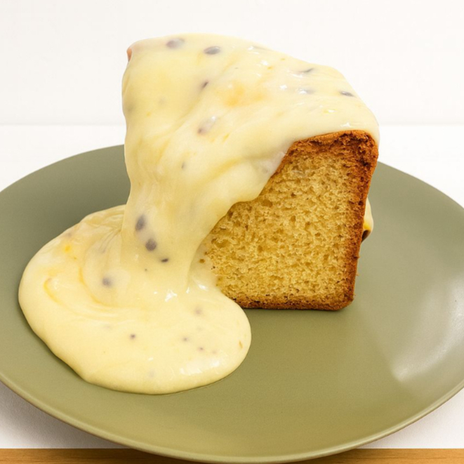 Bolo de Maracujá com cobertura de mousse de Maracujá.