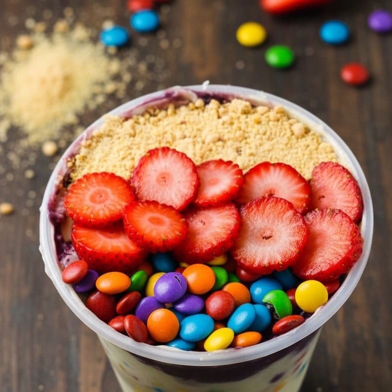 Uma deliciosa combinação, de morangos, Yakult e Sprite