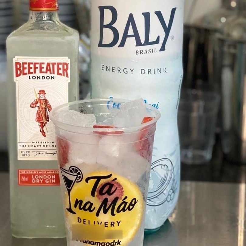 Copão de 700ml, com gelo de sabor (ou seco), energético e gin.