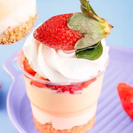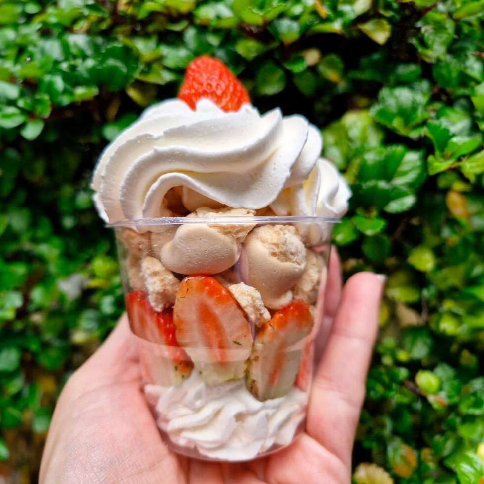 Uma explosão de texturas e sabores em cada colherada! Começamos com um creme de chocolate branco super cremoso, seguimos com morangos fresquinhos e suculentos, depois vem o crocante dos suspiros e, por fim, um chantilly leve como nuvem. É doce na medida, fresquinho e apaixonante — impossível comer só um!
