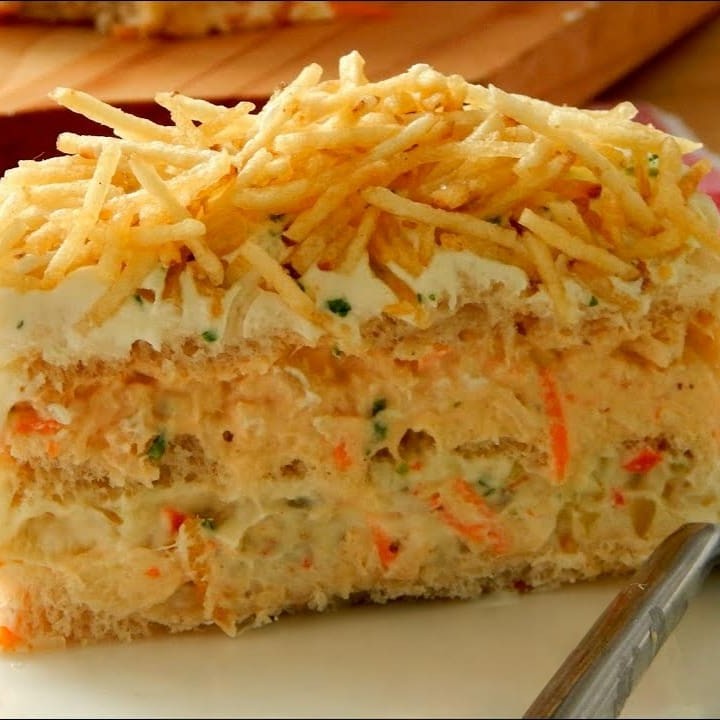 Na Tabinha Gourmet, cada fatia conta uma história de sabor! Nosso bolo salgado de frango é feito com camadas de pão de forma sem casca, recheados generosamente com frango temperado, cremoso requeijão e ingredientes fresquinhos, garantindo uma explosão de sabor a cada mordida. Servimos em fatias generosas, perfeitas para satisfazer sua fome com um toque caseiro e especial. Experimente essa delícia