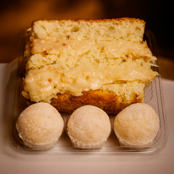 Surpreenda-se com o sabor clássico e irresistível do nosso Bolo Vulcão Prestígio! Uma combinação perfeita de massa fofinha de chocolate e uma generosa camada de beijinho que transborda. Um verdadeiro prazer para os amantes de coco e chocolate. Peça agora e experimente essa explosão de sabor! Peso aprox. 500g
