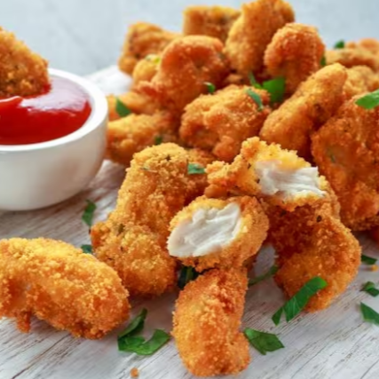 Porção com 10 Deliciosos e crocantes Nuggets de Frango, acompanha molho de 70g de sour cream e barbecue Serve 2 pessoas