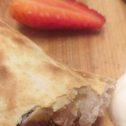 Uma sobremesa deliciosa......tortilla Mexicana recheada com um sabor doce a sua escolha, empanada, fritinha e bem sequinhaa......muy bueno !!