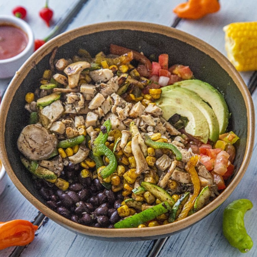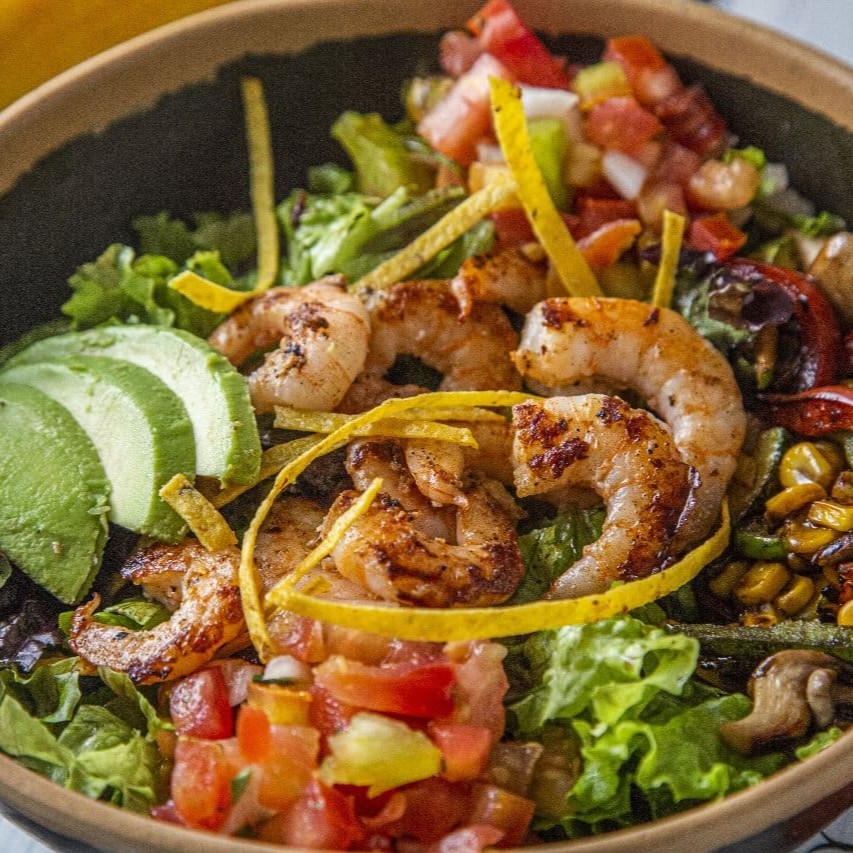 Desfrute da nossa Salada Fajita, uma harmoniosa combinação de folhas verdes frescas, milho cuidadosamente grelhado e vegetais vibrantes, também grelhados. Acrescentamos uma generosa porção de salsa fresca e suculentas fatias de abacate para dar um toque especial. O prato é finalizado com crocantes tiras de tortilla e é gentilmente regado com nosso autêntico molho balsâmico. Escolha uma proteína de