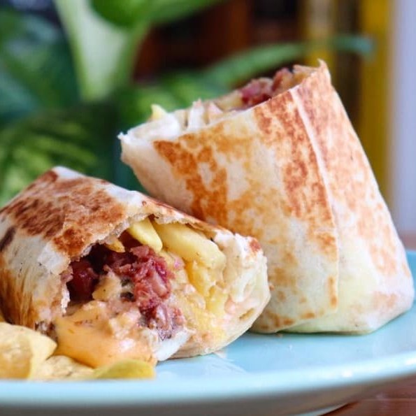 Queijo tostado com opção de arroz mexicano ou quinoa, molho especial, salsa fresca, fatias de avocado e bacon. escolha tortilla de trigo ou integral. acompanha tortilla chips. escolha uma proteína: frango, carne, mix vegetariano, peixe, Pulled Pork ou camarão.