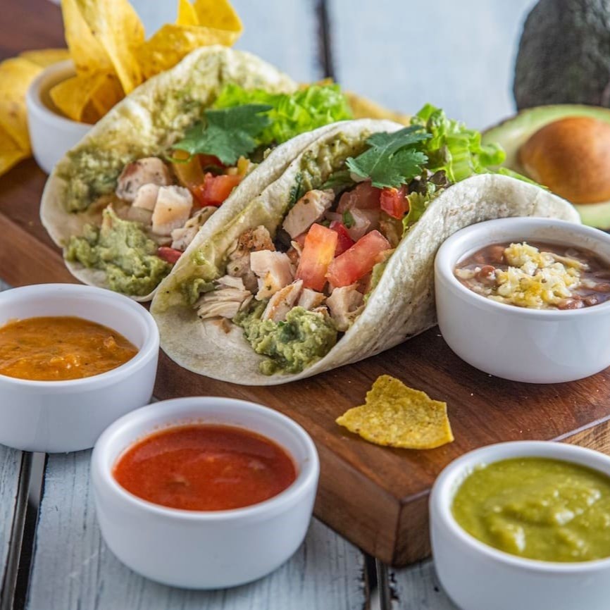 Guacamole, queijo, molho especial e salsa fresca. escolha tortilla de trigo ou integral. acompanha tortilla chips. escolha uma proteína: frango, carne, mix vegetariano, peixe, Pulled Pork ou camarão.