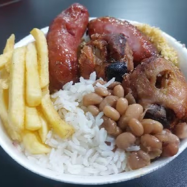Padrao serve bm 1 pesoa marmita feijao.aroz.fritas.farofa 1 frango. 1 linguisa