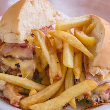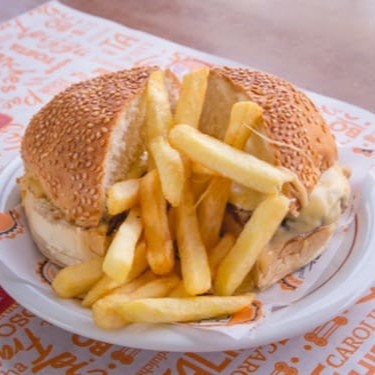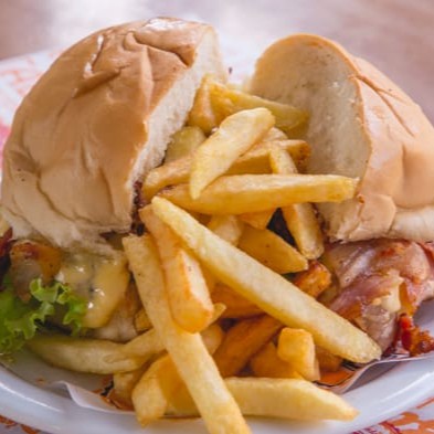 Hambúrguer 90grs, Queijo Prato derretido e Maionese da casa.