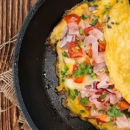 Nossa Omelete é preparada com: 03 Ovos, Peito de Peru e Queijo Branco.