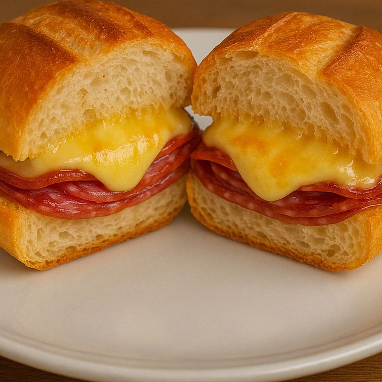 Preparado com Pão Francês, Salame e Queijo Provolone.