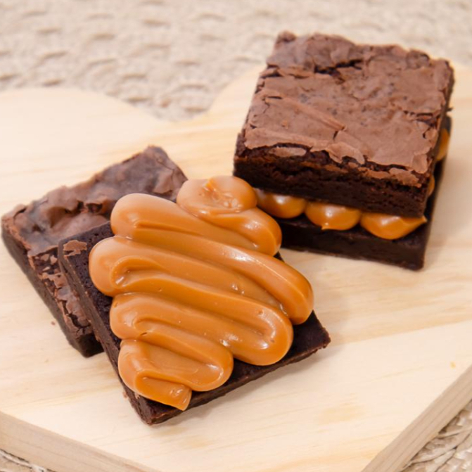 Nosso incrível brownie com recheio de doce de leite (peso 80 gramas)